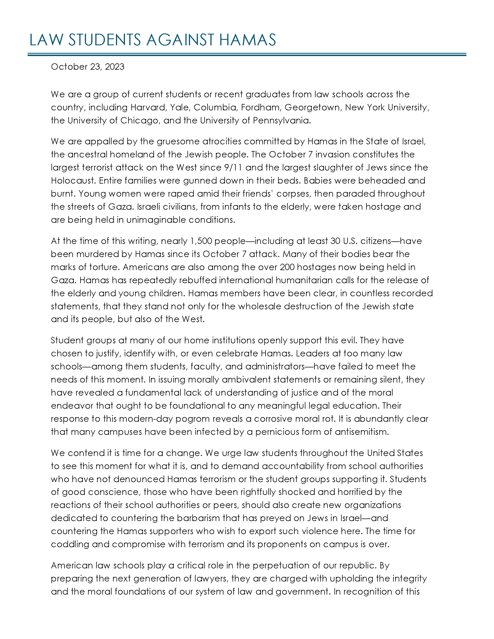 Lawyers and law students: you can add your name in support of Law Students against Hamas below. Here is a growing list of supporters from the legal community: